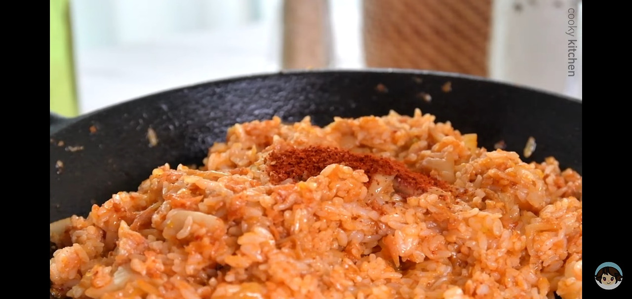 이때, 밥을 잘 섞은 후에 고추가루 한 스푼과 버터 반 스푼을 넣어주면, 김치볶음밥이 더 맛있고 고소하게 변해요! 이렇게 하면 더욱 먹음직스러운 김치볶음밥을 즐길 수 있답니다.