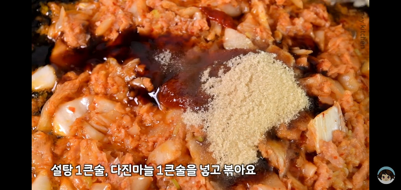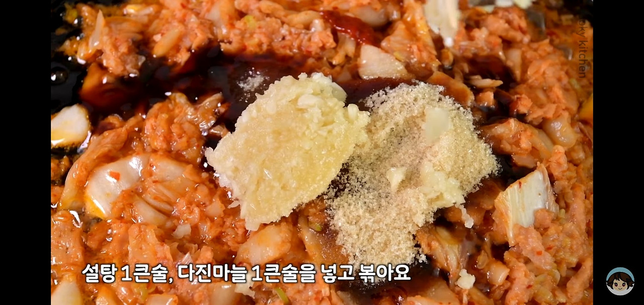 설탕 한 스푼과 다진 마늘 한 스푼을 추가하면, 마늘의 알싸한 향이 더해져 한층 더 맛있는 김치볶음밥을 완성할 수 있어요.
