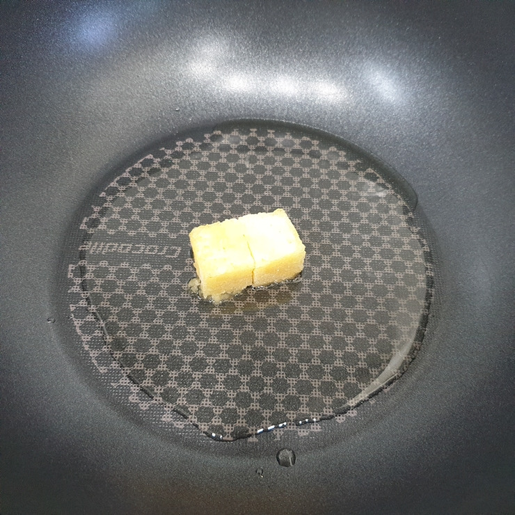 6. 팬에 기름을 두르고 다진 마늘을 넣어 마늘향이 나도록 볶아줍니다.