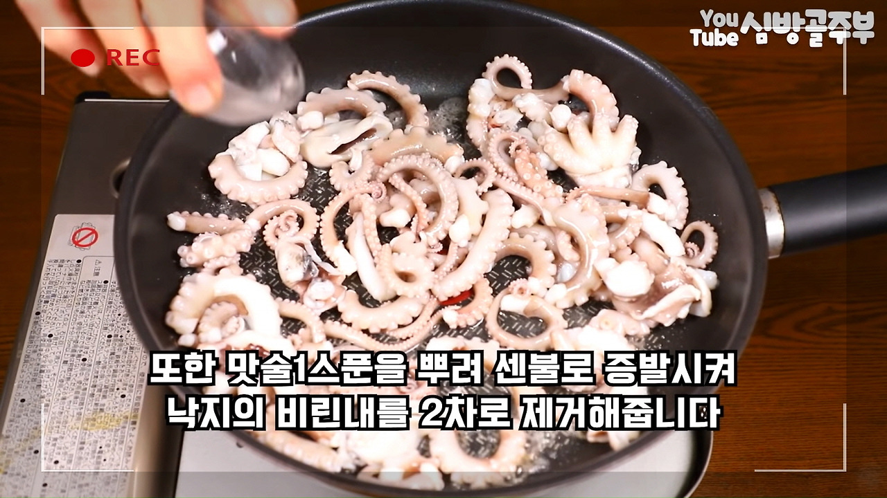 낙지는 볶을 때 물이 많이 생기기 때문에, 끓는 물에 20초 정도 빠르게 데쳐주는 것이 중요해요.