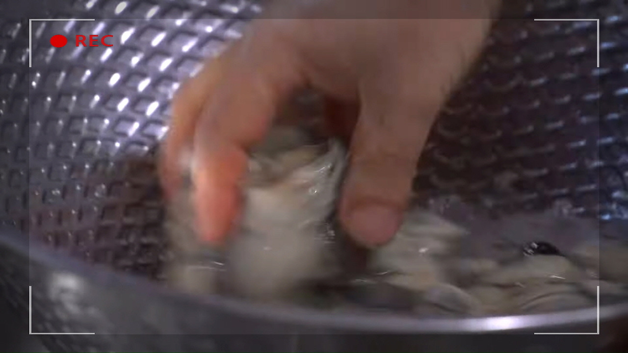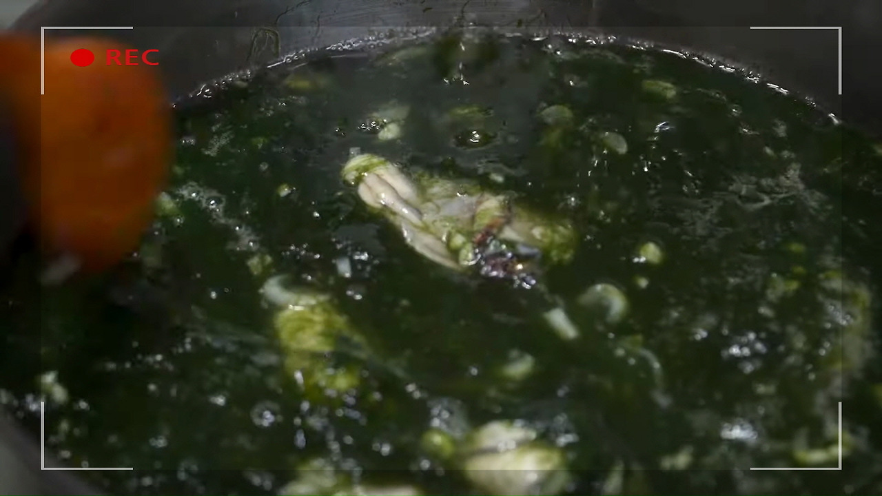 잘 씻어낸 매생이는 채에 걸러 주세요.