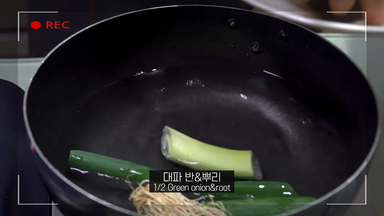 매생이 굴국을 끓일 때 육수를 내는 방법을 소개할게요. 그냥 물만 끓여도 되지만, 좀 더 깊고 진한 맛을 원하시면 먼저 육수를 준비하는 것이 좋습니다. 물 4~5컵에 대파 1/2대와 파뿌리를 넣고 끓여주세요.