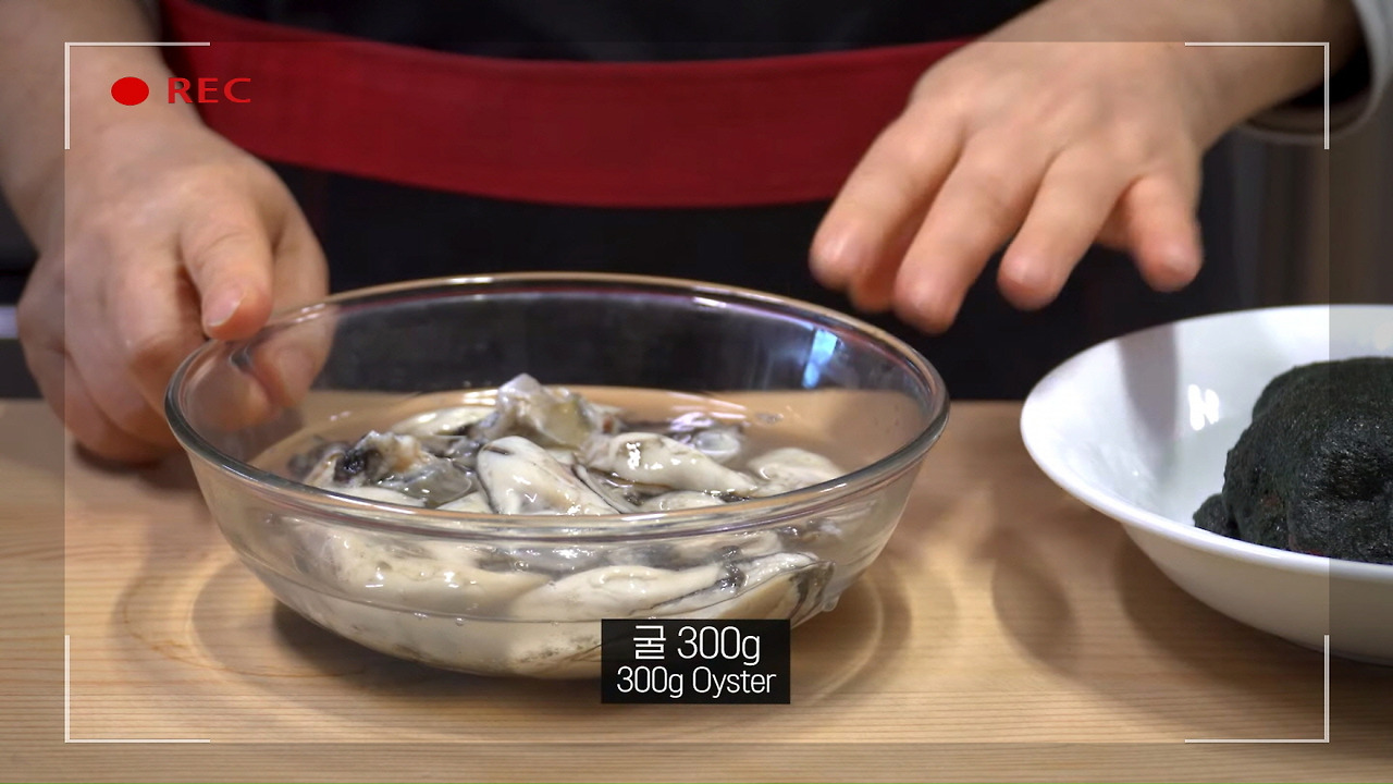 오늘 매생이 굴국을 만들기 위해 필요한 재료는 매생이 300g과 굴 300g입니다.