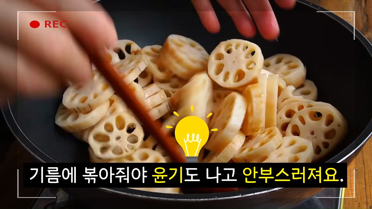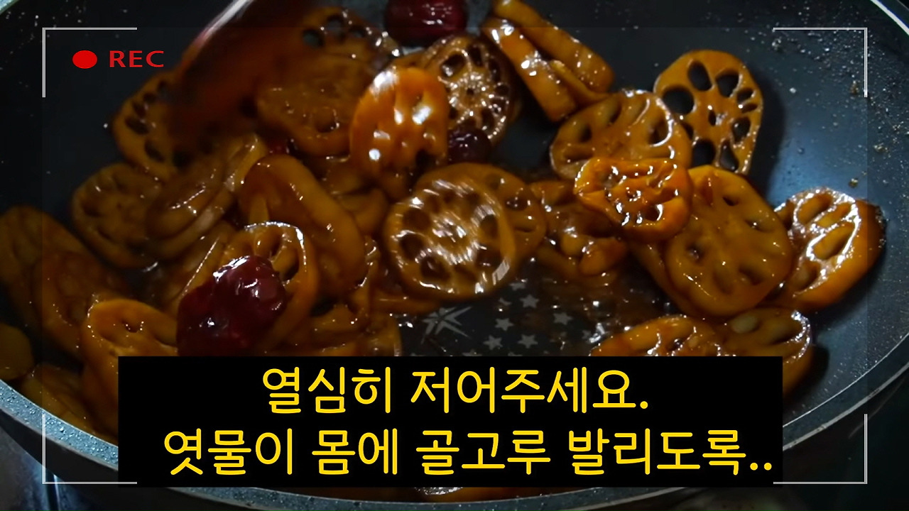 연근조림을 골고루 저어주면서 바닥에 남은 물기가 거의 없어지면, 이제 연근조림을 만들 때 유용한 팁을 알려드릴게요.