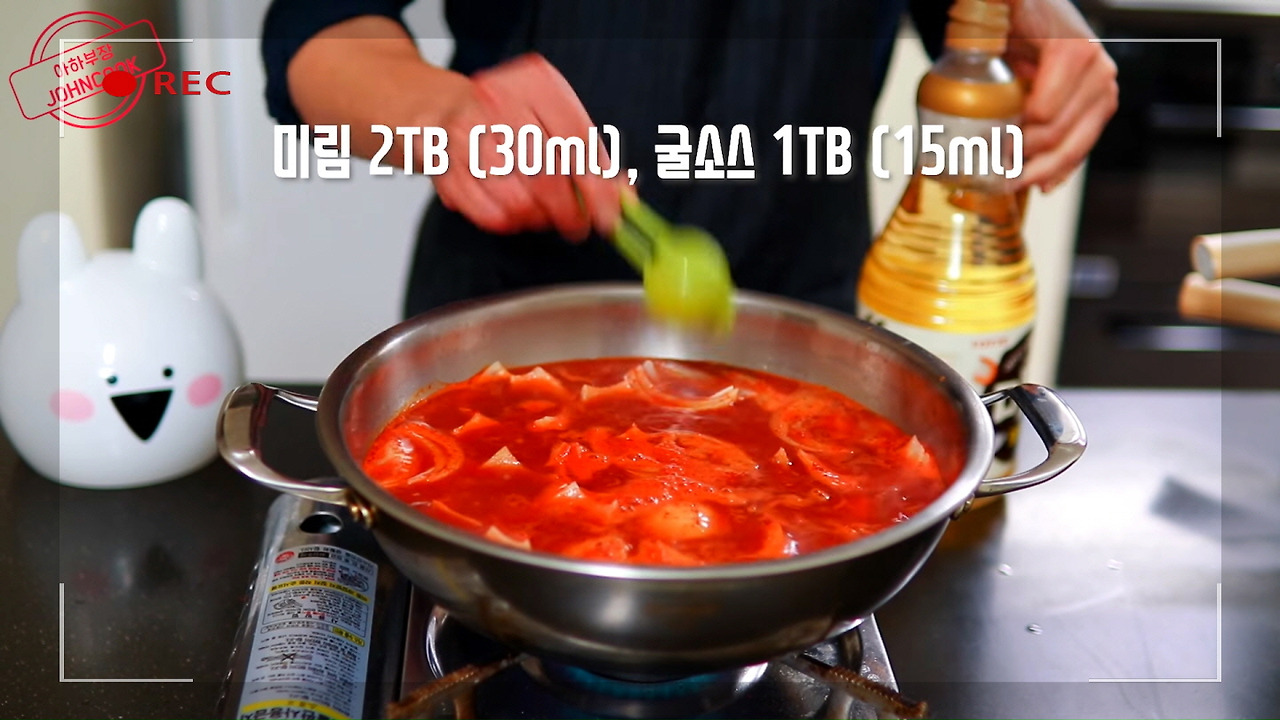 진간장 2큰술, 미림 2큰술, 그리고 굴소스 1큰술을 넣어주세요.