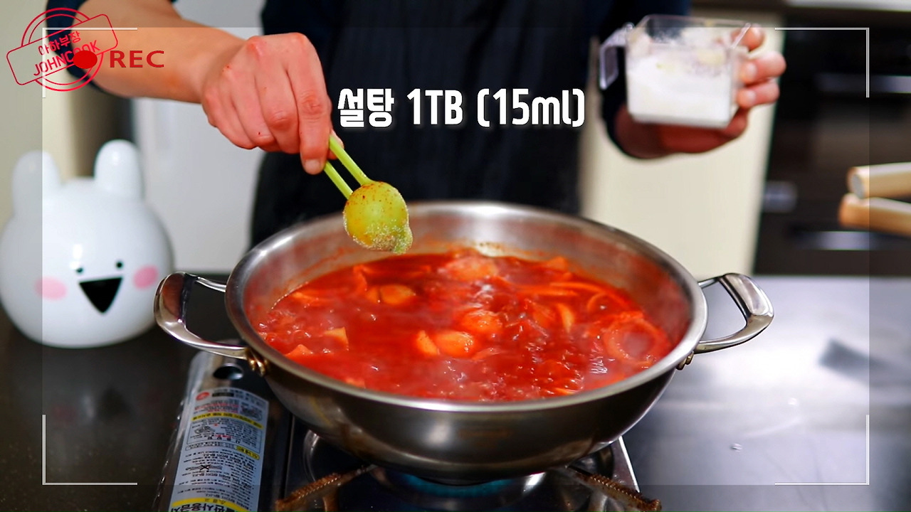설탕 1큰술을 넣어주면, 누구나 좋아할 만한 기본적인 맛의 닭도리탕 레시피가 완성됩니다. 10분 정도 끓인 후, 닭볶음탕 레시피의 다음 단계로 진행해 주세요.