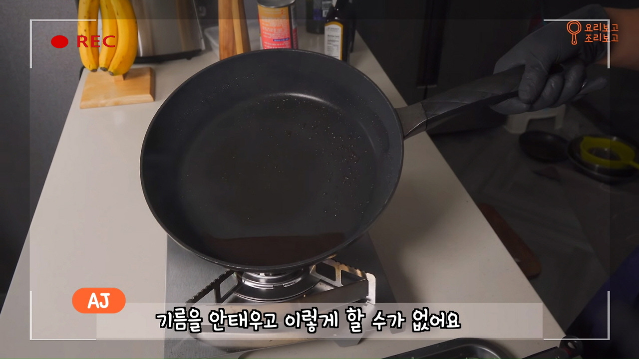 팬에 식용유를 충분히 두르고, 코팅팬은 연기가 날 때까지 과하게 예열해 주세요.