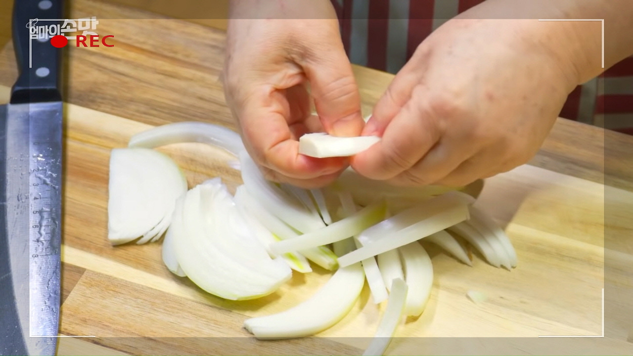 양파 반 개를 얇게 슬라이스하여 제육볶음에 은은한 단맛과 함께 식감도 더해주세요.