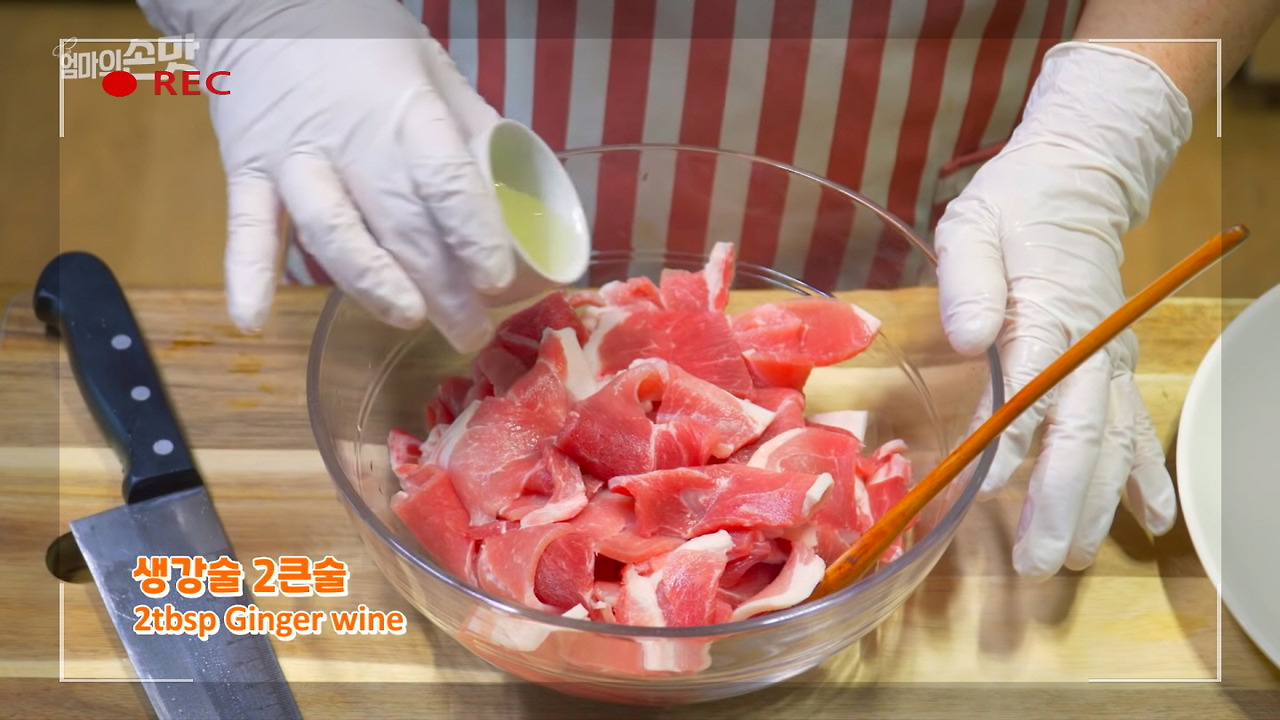 제육볶음을 맛있게 만드는 양념장 황금레시피를 알려드릴게요. 여기서 중요한 팁은 생강술 2큰술을 넣는 건데요, 미림, 청주, 소주, 맛술 모두 괜찮아요. 이 생강술이 돼지고기의 잡내와 누린내를 잘 없애주어, 더욱 깔끔하고 맛있는 제육볶음을 즐기실 수 있어요.