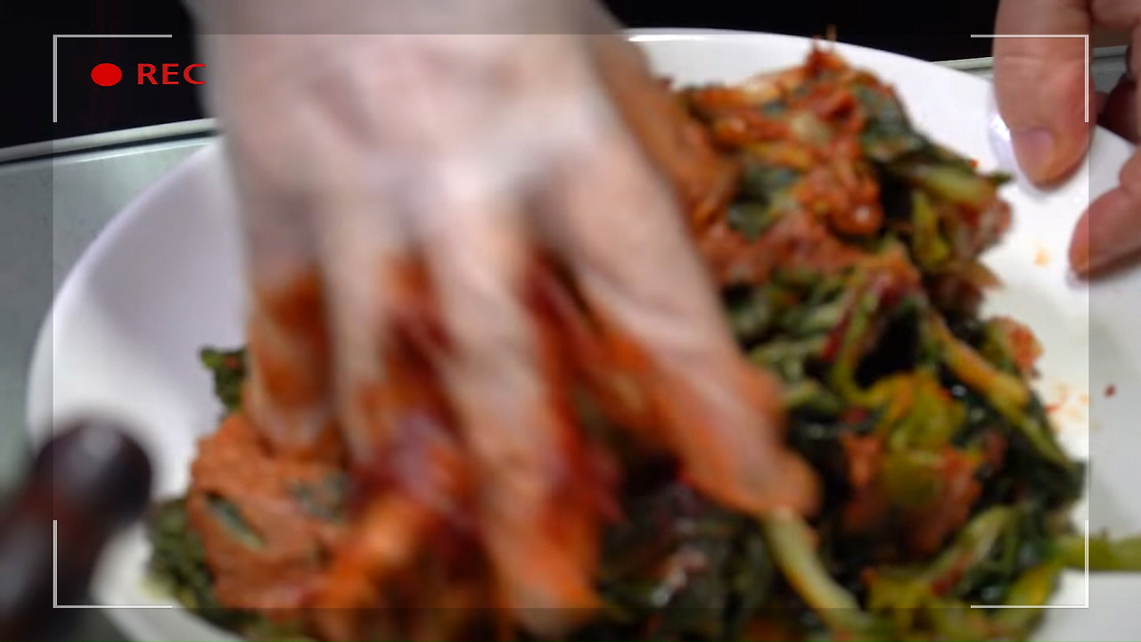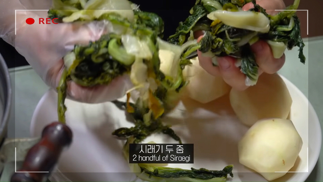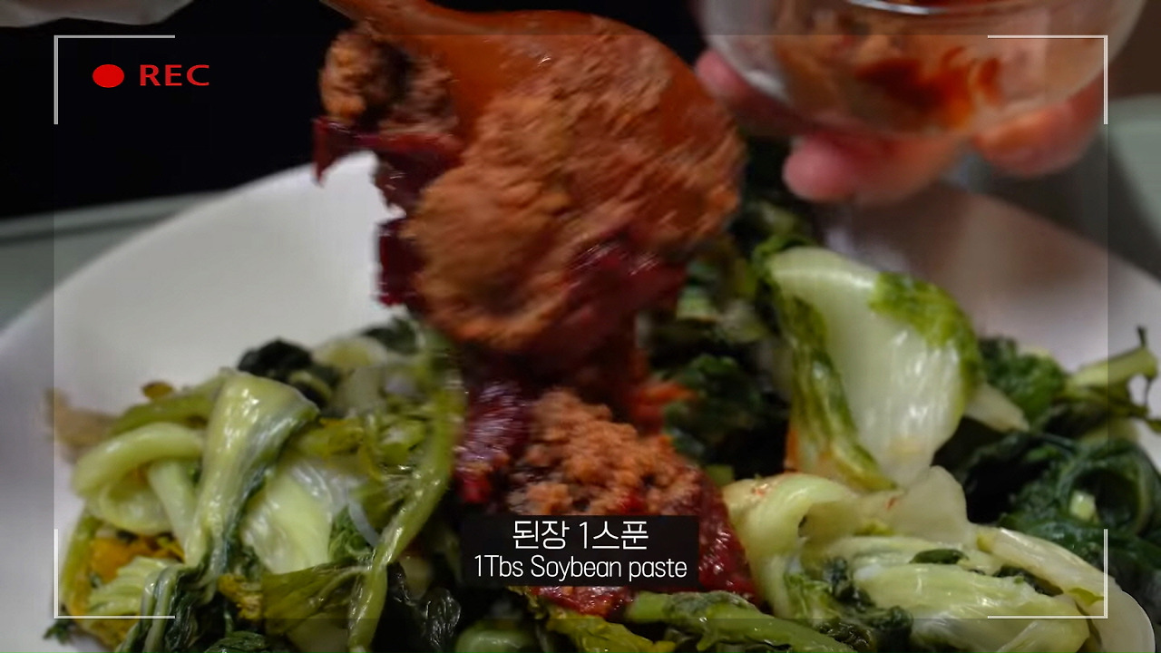 시래기에 된장과 고추장을 각각 1스푼씩 넣고 골고루 버무려주면 감칠맛이 살아 있는 맛있는 뼈해장국을 즐길 수 있어요.