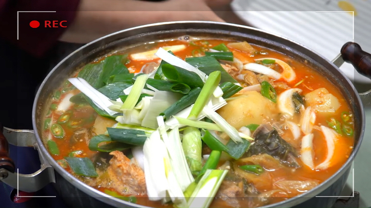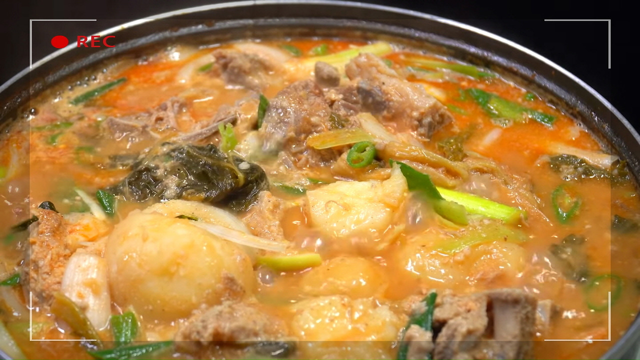 이렇게 오늘의 감자탕 황금레시피로 완성된 감자탕이랍니다. 진하고 구수하면서도 칼칼한 맛이 일품이에요. 취향에 맞게 깻잎이나 고추가루를 추가하셔도 좋습니다. 평소 레시피를 공부할 때 자주 참고하는 유튜브 채널 <엄마의손맛>에서 '고소한 맛, 누린내 1도 없이 깔끔한 감자탕 만들기' 영상을 소개해드렸어요.