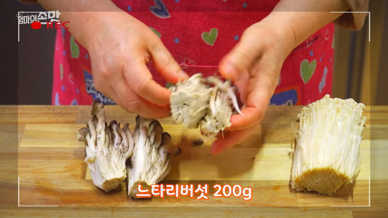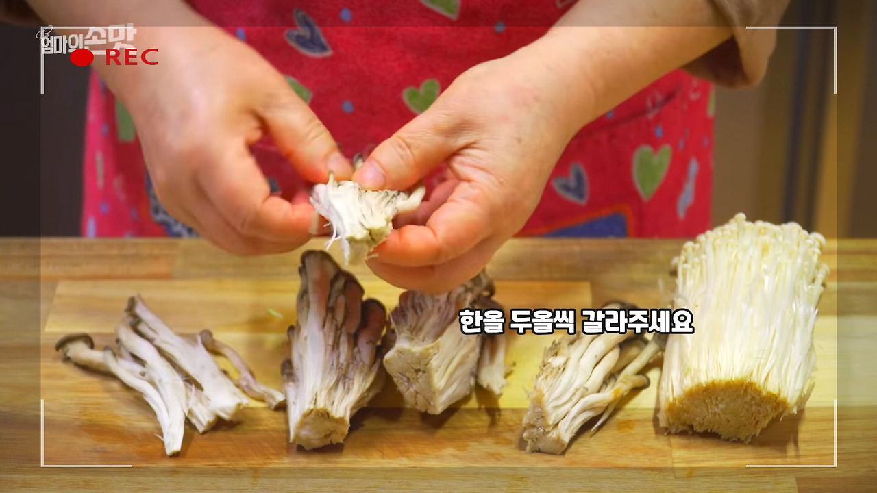 팽이버섯 1봉도 깨끗하게 씻은 후 물기를 잘 짜내고, 먹기 좋은 크기로 나누어 주세요. 버섯의 깊은 감칠맛이 육개장의 풍미를 한층 더해줍니다.