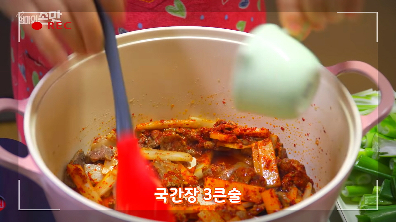 국간장 3큰술과 참치액 3큰술을 넣어 육개장의 간을 맞추고, 감칠맛을 한층 더 살려주세요. 이제 육개장을 맛있게 끓이는 마지막 단계로 넘어가 보겠습니다.