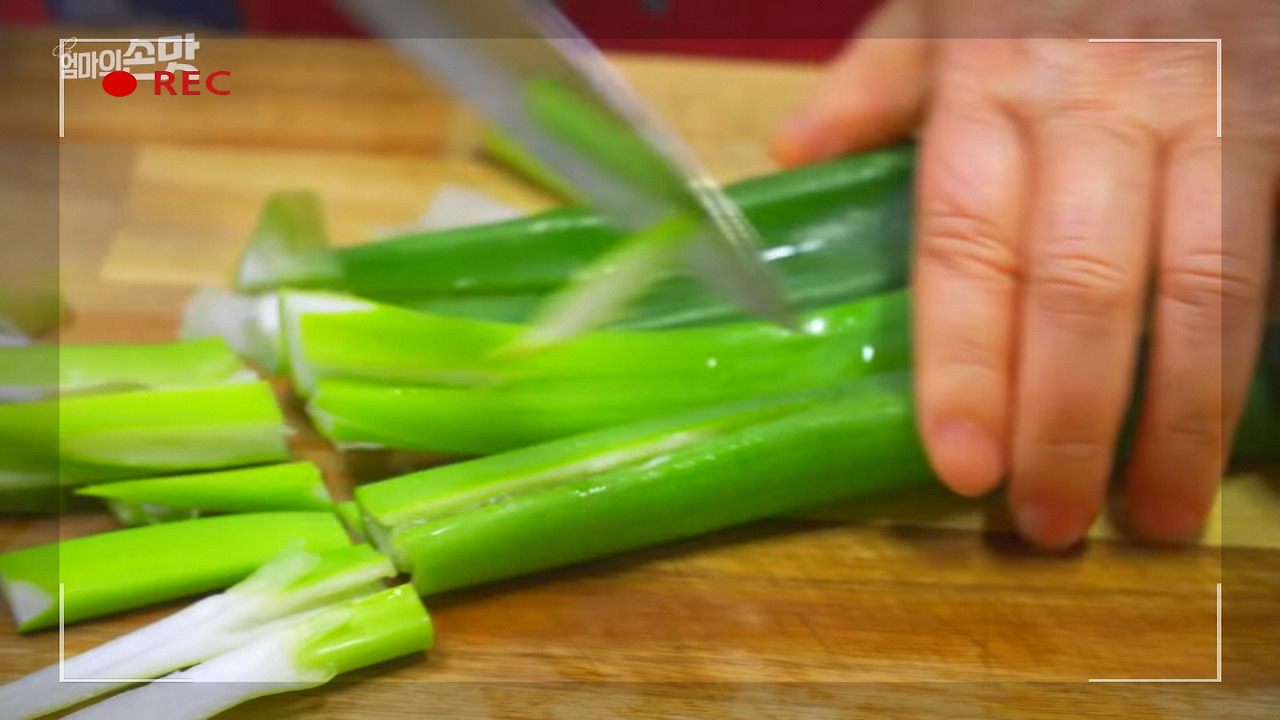 대파는 3줄 정도 넣어주세요. 육개장에 대파를 듬뿍 넣으면 시원하고 맛이 더욱 풍부해질 뿐만 아니라, 잡내를 잡아주고 은은한 파향이 육개장의 풍미를 한층 더 살려줍니다.