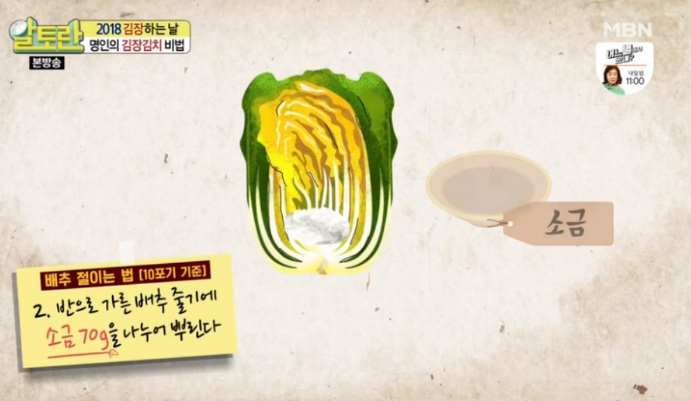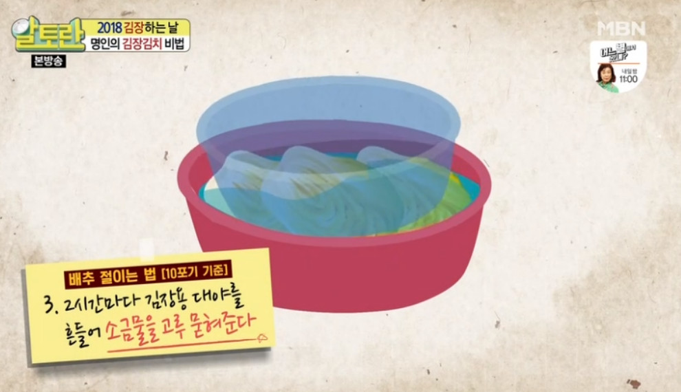 이 과정을 14시간 동안 반복하면 배추 절이기가 완성됩니다.