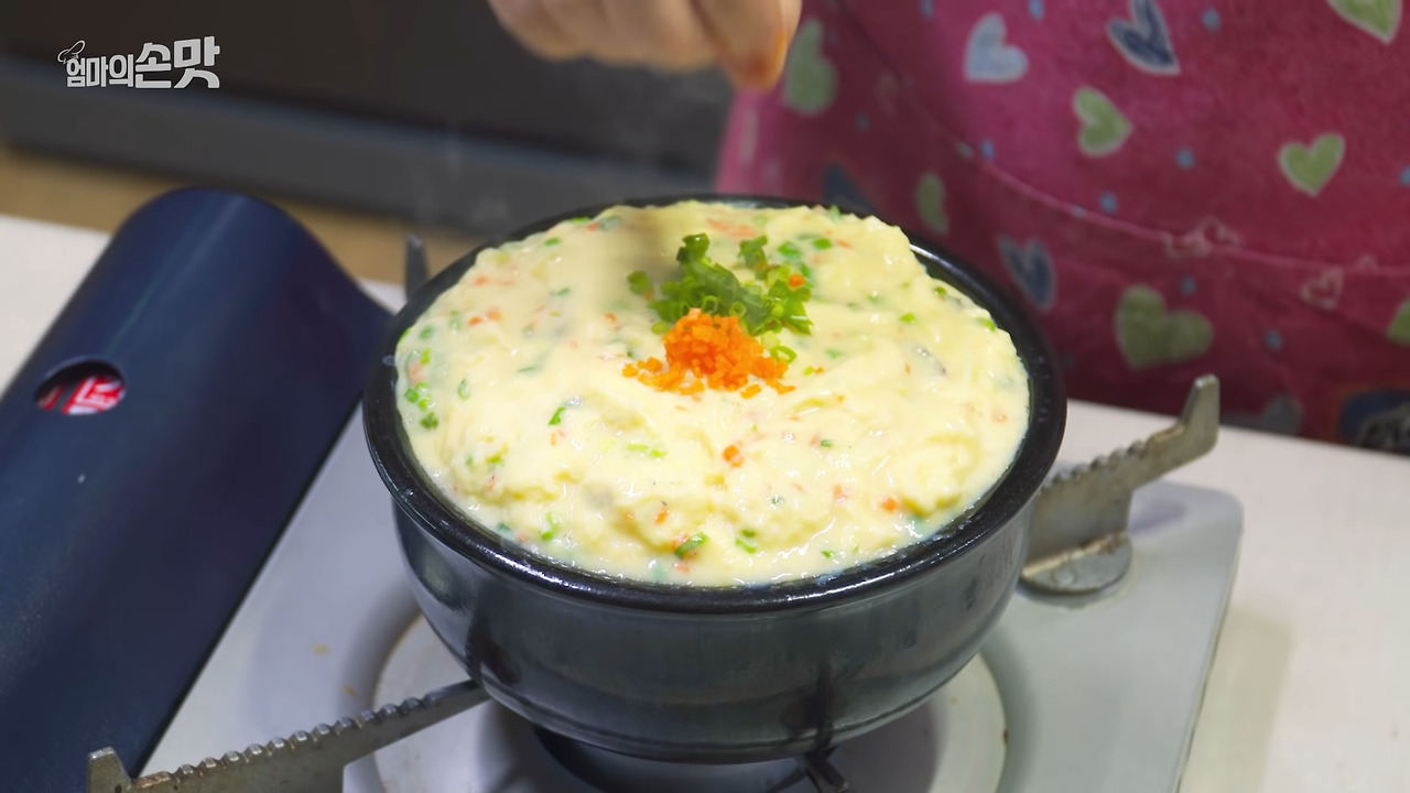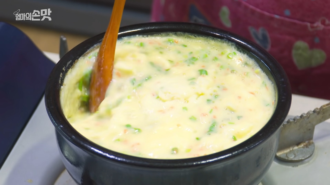 뚝배기가 뜨겁게 달궈진 상태에서, 내부 열기로 인해 계란이 폭탄처럼 수북하게 부풀어 오릅니다. 이렇게 만들어진 계란찜은 아주 부드럽고 촉촉해져 정말 맛있어요. 한껏 부풀어 오른 계란찜은 보기에도 먹음직스러워요! 부드럽고 촉촉해서 입맛이 없는 아침에 먹기 딱 좋답니다!