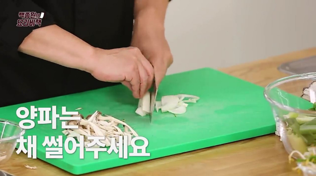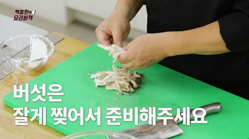 6. 느타리버섯 2컵(80g)은 손으로 잘게 찢고, 양파 1/4개(70g)는 채 썰어서 준비해 주세요.