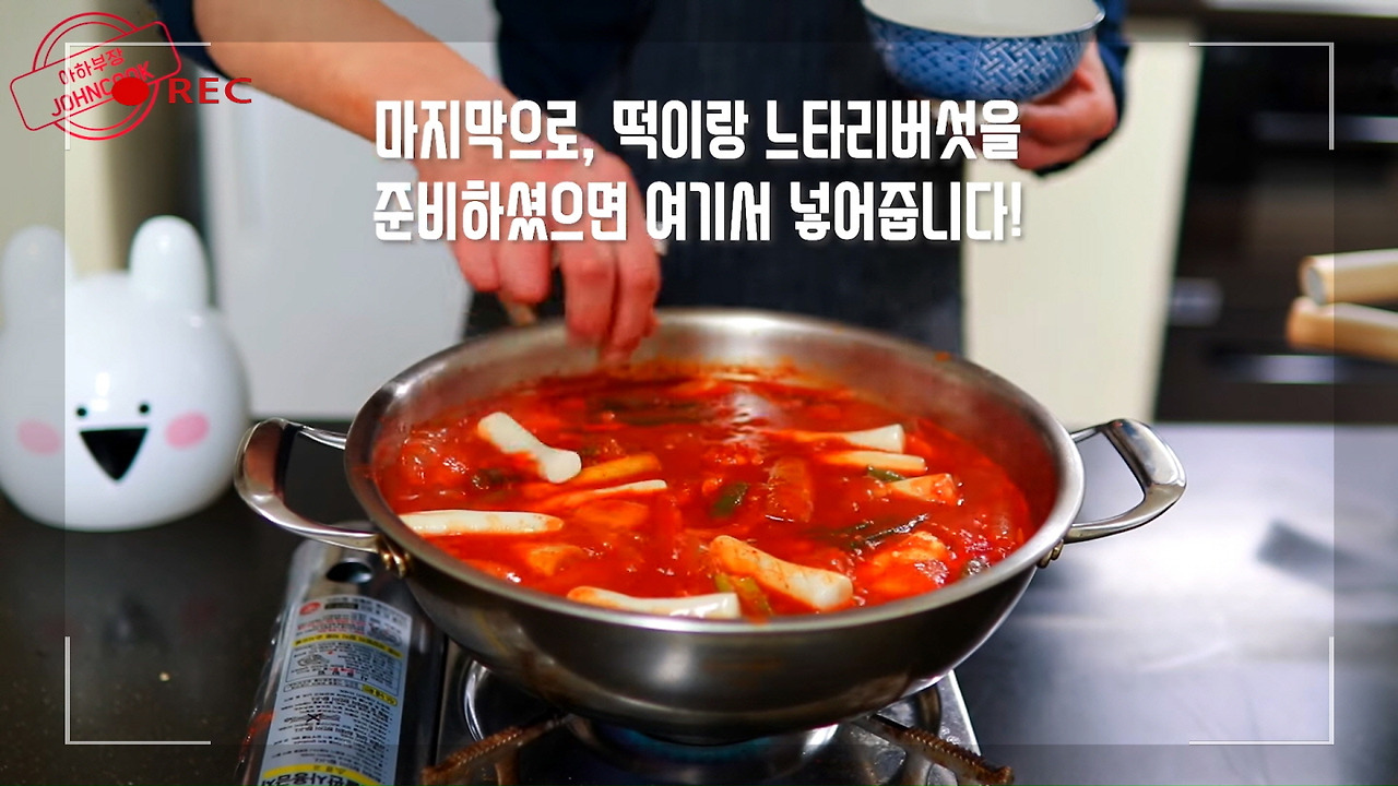 마지막으로, 떡과 느타리버섯을 준비하셨다면, 이때 함께 넣어주시면 됩니다.