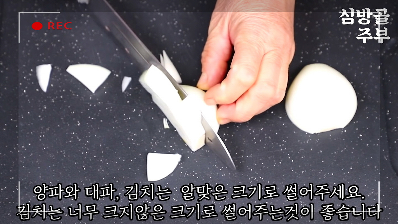이어서 대파와 김치도 적당한 크기로 썰어주세요. 대파는 콩나물국의 잡내를 잡아주고, 깔끔한 맛을 내는 데 꼭 필요한 재료예요. 김치는 칼칼하면서도 깊은 감칠맛을 더해, 콩나물국의 풍미를 한층 높여준답니다.